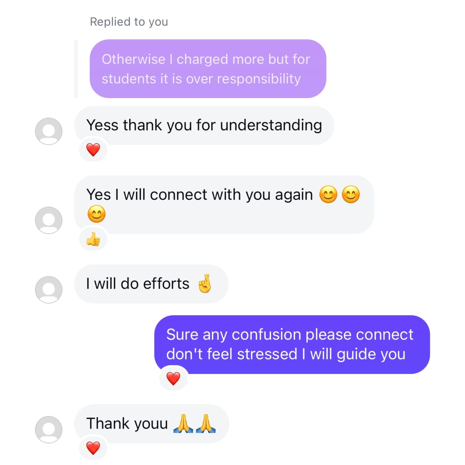 All sessions are done virtually—either via voice call (WhatsApp/Instagram) or video call, depending on your preference.